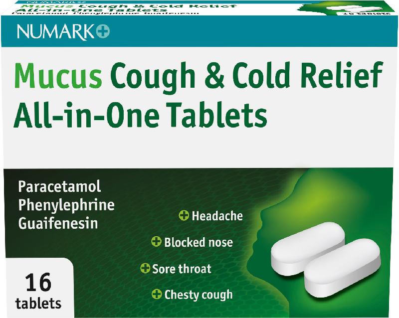 NUMARK OTC medicines mucus cough & cold relief all-in-one tablets 100mg/250mg/5mg 16